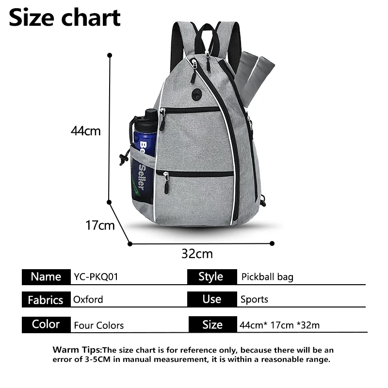 This sling bag complements other gear. Pair it with paddles, balls, and wristbands for a coordinated set. Coaches and teams find that customized logos create a sense of unity and professionalism. The bag is also a strong promotional item for events, giveaways, or retail sales