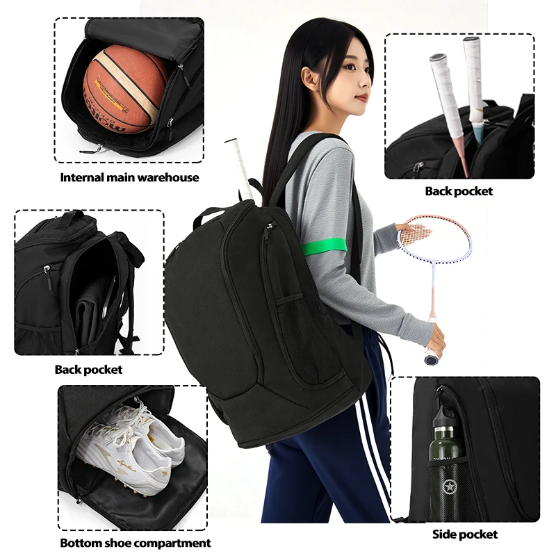 Durable materials stand up to regular use. Reinforced stitching and strong zippers ensure the bag lasts season after season. The water-resistant outer fabric guards against light rain and splashes, so gear stays dry on the way to outdoor courts. The padded shoulder straps and an adjustable sling offer comfortable carrying options. A top handle makes it quick to grab and go. Whether walking, biking, or driving, the bag stays steady and balanced thanks to its thoughtful shape and build